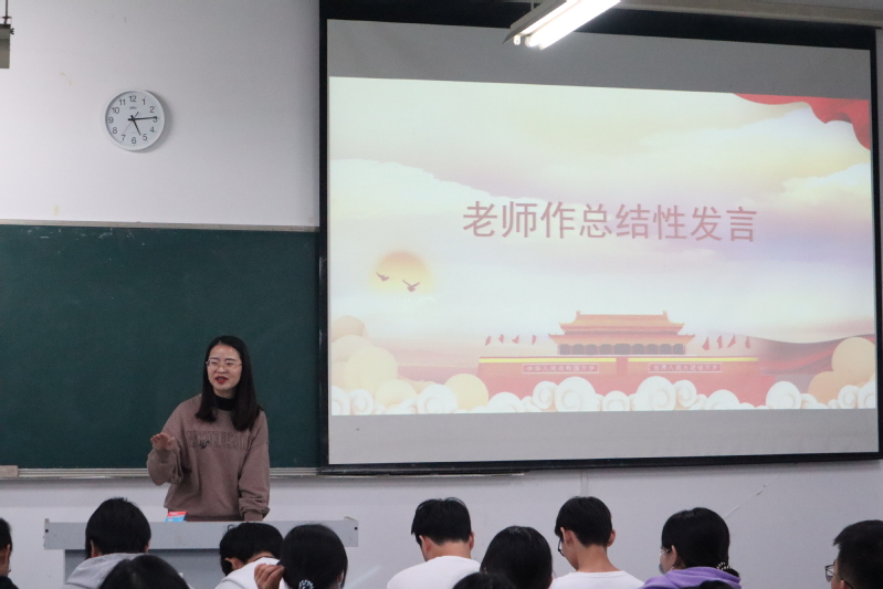 最后,郑小蓉老师作总结发言。她对两位优秀退役学生精彩分享表示感谢,讲述了参军对个人磨砺和价值实现的意义;同时她鼓励同学们勇于磨炼自己的意志,以苦为乐,再苦不言,成为胸怀家国、能担重任的新时代中国青年,号召同学们积极参军,报效祖国;希望同学们坚定理想信念,不忘报国初心,奋斗前进,为实现新时代强军梦、推动社会主义现代化强国建设贡献自己的力量。