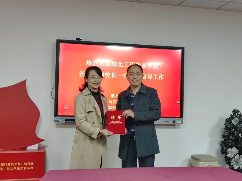 为提高我院研究生培养质量、探索双导师制模式、推进研究生工作站建设,11月16日上午,我院特邀湖北工程职业学院副校长汪丽华、湖北工程职业学院伟德国际victor1946副院长刘晓璇来我院指导工作。我院党总支书记程焰,副院长唐兴军,研究生导师江峰教授,俞玲教授以及22级学生代表出席了此次会议。会议由学院副院长唐兴军主持。首先唐院长对汪丽华副校长、刘晓璇副院长的到来表示热烈欢迎,并当场为汪丽华副校长颁发了兼职硕士生导师聘书。