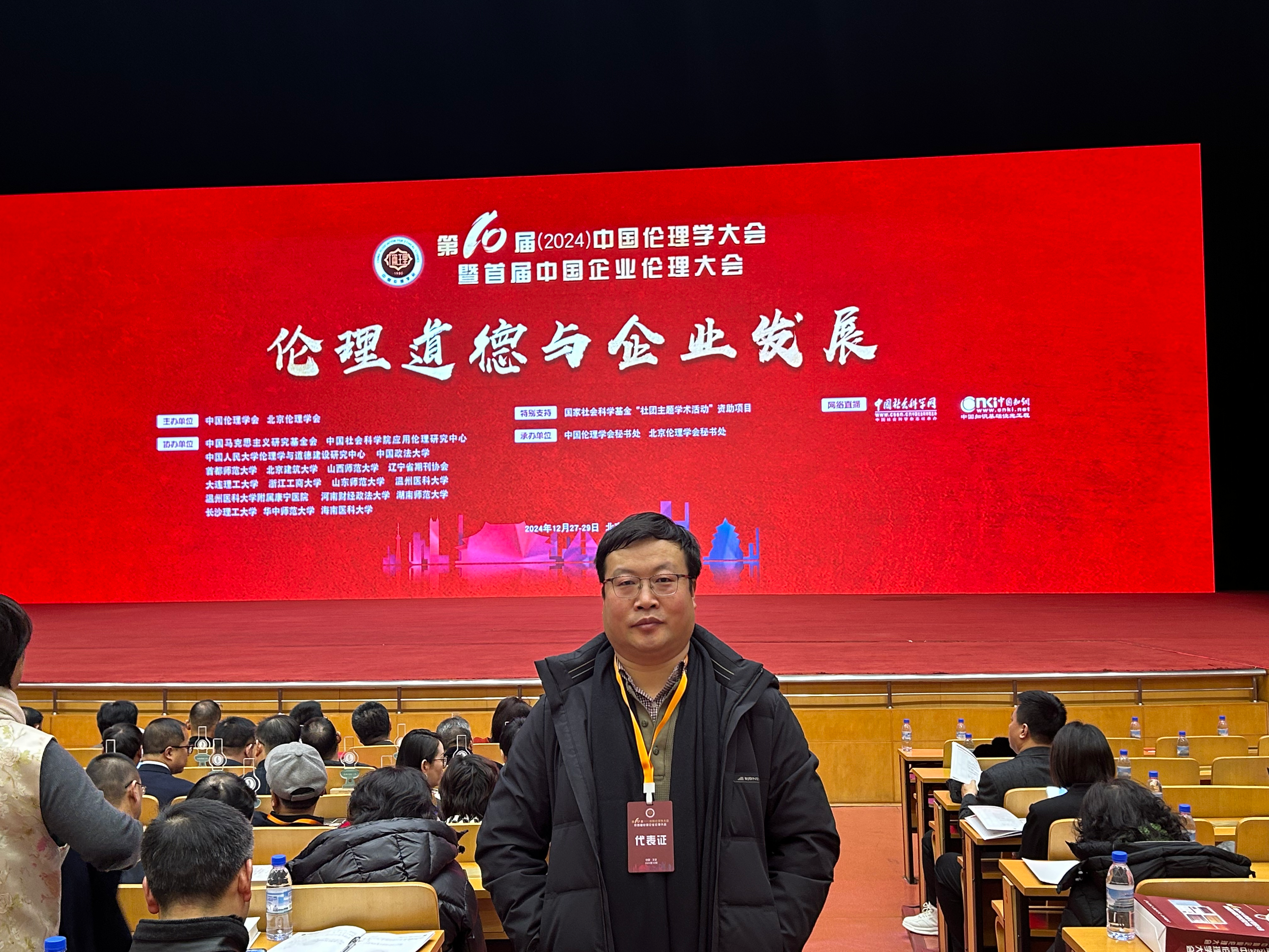 2024年12月27日至29日,第十届(2024)中国伦理学大会暨首届中国企业伦理大会在北京举行。本次大会由中国伦理学会、北京伦理学会联合主办,来自全国600多名专家学者和企业界代表出席大会。本次大会以“伦理道德与企业发展”为主题,由中国马克思主义研究基金会、中国社会科学院应用伦理研究中心、中国人民大学伦理学与道德建设中心、中国政法大学、首都师范大学、北京建筑大学、山西师范大学、辽宁省期刊协会、大连理工大学、浙江工商大学、山东师范大学、温州医科大学附属康宁医院、河南财经政法大学、湖南师范大学、长沙理工大学、华中师范大学、海南医科大学参与协办。中国社会科学网、中国知网对大会开幕式进行了现场直播。我院王世泰博士受邀参加,以论文《加速发展新质生产力进程中资本的功效及职能定位研究——以马克思关于资本的主要识见为考察》向与会学者分享了近期研究心得体会。该论文成果入选“第十届(2024)中国伦理学大会”推荐论文。