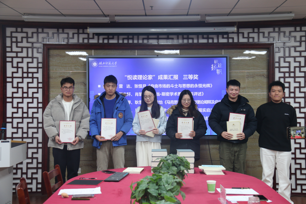赵召健、雷达、张恒月组的阅读汇报成果《亚当·斯密学术思想谱系评述》、缪瑞丰、程文轩、肖慧敏组的阅读汇报成果《亚当·斯密学术思想谱系评述》、张菡铄、朱亚萍、耿雪盈、韩思怡组的阅读汇报成果《马克思学术思想的理论阐释及启示》、李炎泽、张瀚文、吴迪组的阅读汇报成果《恩格斯学术思想谱系评述及现实启迪》、张绪文、杜震、赵满熠组的阅读汇报成果《约瑟夫·熊彼特学术思想谱系评述》荣获三等奖,由伟德国际victor194624研班长吴迪予以颁奖。