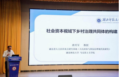 本次论坛分为两个主题研讨环节,分别是主旨报告和圆桌会议。上午的主旨报告围绕党建引领基层治理展开,由湖北省城乡基层自治组织研究会副会长袁方成主持。我院院长唐兴军以“社会资本视域下乡村治理共同体的构建”为题进行主旨报告。