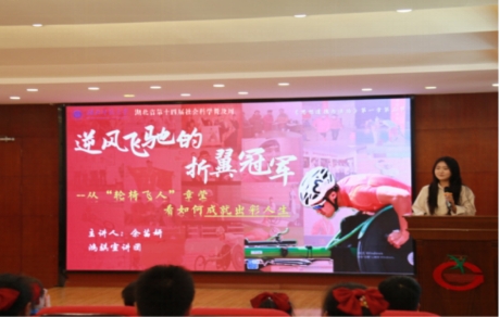 活动开场,鸿骐宣讲团成员余茜妍带来以《逆风飞驰的折翼冠军——从“轮椅飞人”章莹看如何成就出彩人生》为主题的宣讲课程。余茜妍以2025年苔花公约作为引入,通过情境模拟、提问互动、分享职业规划、制作微实践策划案等丰富的课堂活动,带领学生们走进黄石籍世界冠军章莹的人生故事,感悟残障群体的不易,将思政小课堂与社会大课堂紧密相连,用身边鲜活的模范人物事例引导学生将小我融入大我,树立远大理想,积极担当奉献,深深打动了在场的每一位学生。