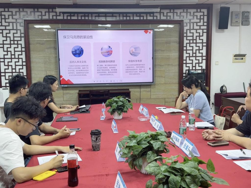 活动采用经典文献研读形式,引导参与者深入文本内核。2024级马克思主义原理专业的五位硕士研究生围绕《保卫马克思》一书进行了精彩纷呈的主题发言。李炎泽同学首先从历史语境切入,探讨了《保卫还是背离?——<保卫马克思>的写作背景》,为理解阿尔都塞的理论动机奠定基础。王麒皓同学紧随其后,系统阐释了《为何保卫?——试论<保卫马克思>中的核心观点》,揭示了阿尔都塞为马克思辩护的核心逻辑。张瀚文同学则聚焦方法论,分析了《如何保卫?——从<保卫马克思>看马克思主义的科学分析方法》,提炼其理论精髓。刘晨同学深入文本细节,带来《“回归马克思”:浅析<保卫马克思>中“极端捍卫”》,探讨阿尔都塞独特的解读路径。最后,谭冲同学着眼于现实意义,论述了《“推进马克思”:试论<保卫马克思>的当代启示》,引发对科学社会主义发展路径的思考。
