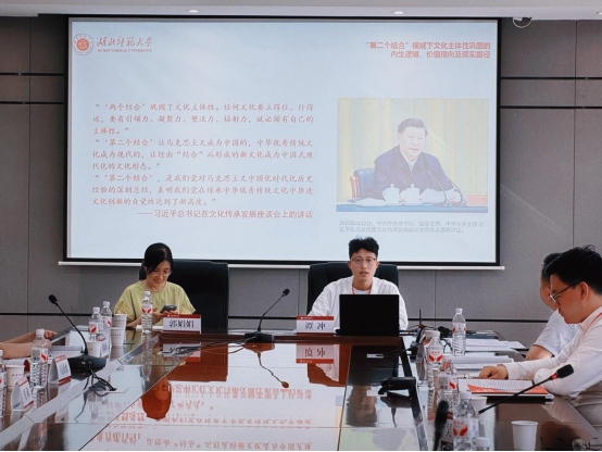 我院研究生谭冲就多重维度剖析“第二个结合”巩固文化主体性的内生逻辑、时代价值等方面进行了学术汇报。谭冲汇报指出,立足于中国特色社会主义伟大实践可以深入探究“第二个结合”何以巩固文化主体性的逻辑关系。通过不同层次的探究可以挖掘“第二个结合”巩固文化主体性并使其在新时代下展现其独特的时代价值。广东医科大学伟德国际victor1946余维法教授对谭冲的学术汇报给予了肯定,认为谭冲的汇报选题新颖,理论框架逻辑清晰,写作语言生动通俗且引经据典,彰显出当代青年学生较好的学术素养。