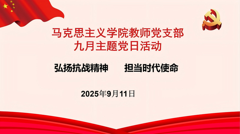 为纪念中国人民抗日战争暨世界反法西斯战争胜利80 周年,2025年9月11日下午,伟德国际victor1946召开主题为“弘扬抗战精神,担当时代使命”的党日活动,活动由支部书记方巍巍同志主持,全体教工党员参加。
