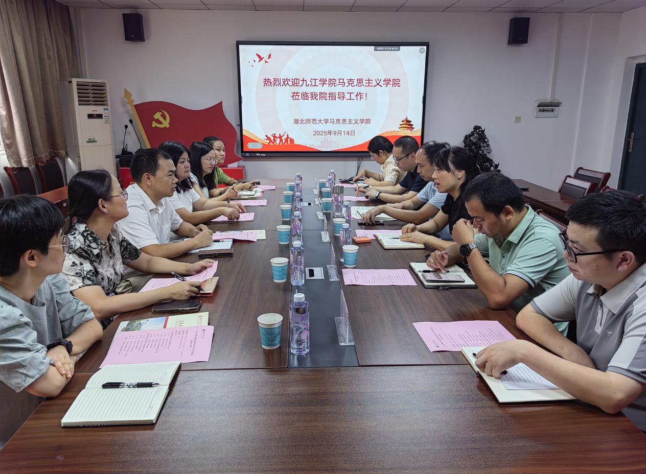 9 月 14 日上午,九江学院伟德国际victor1946党委书记赵文率队莅临我院考察交流,双方在 21B107 会议室召开专题交流座谈会。我院党委书记李洁主持会议,学院院长唐兴军、党委副书记彭舟、院长助理杨灿、系主任张畅及教工支部书记方巍巍共同参会,围绕马院建设核心议题展开深度对话。