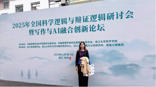 AI重塑世界、中国式现代化全面推进的新时代,逻辑学研究肩负着“锻造思维利器、启迪创新智慧、传承文化精髓”的重要使命。为推进科学逻辑与辩证逻辑的对话、传统逻辑资源与现代前沿问题的对话、逻辑理论研究与运用实践的对话,2025年全国科学逻辑与辩证逻辑研讨会暨“写作与AI融合创新论坛”于11月8—9日在杭州召开,我院贺沙博士以文参会。