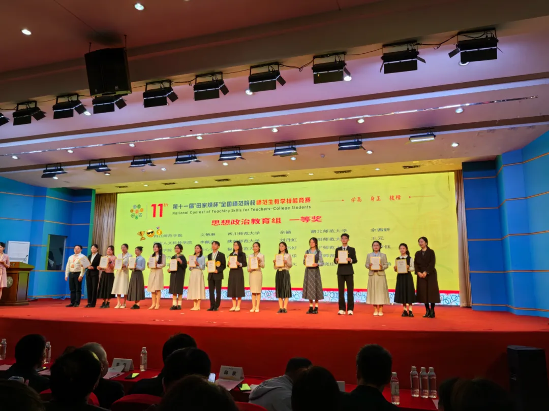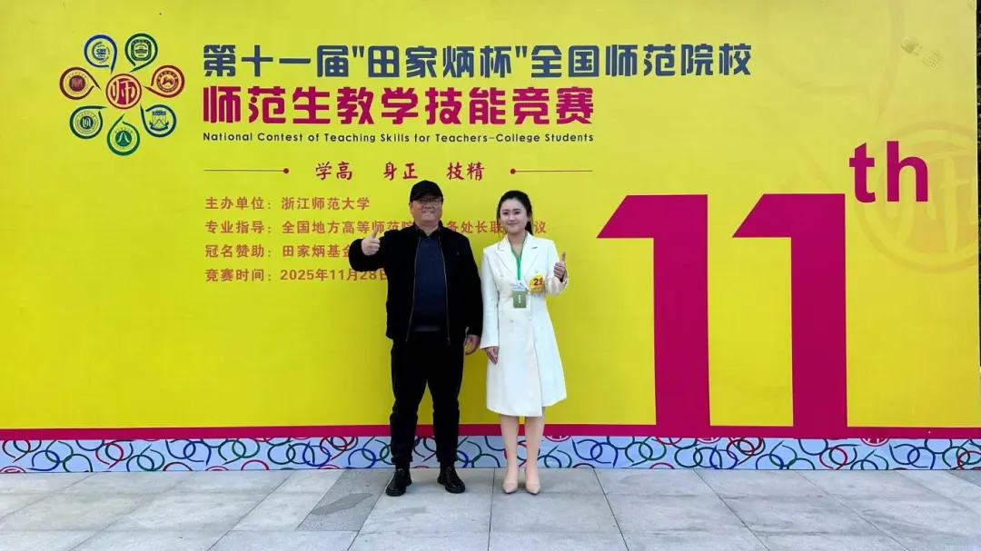 2025年11月28日至11月30日,第十一届“田家炳杯”全国师范院校师范生教学技能竞赛总决赛在浙江师范大学举行。我院2023级思想政治教育专业“优师计划”本科生余茜妍在全国众多参赛选手中脱颖而出,凭借扎实的基本功、优秀的现场表现,荣获思想政治教育组一等奖,取得了我院在该赛事的最好成绩,实现了历史性突破!