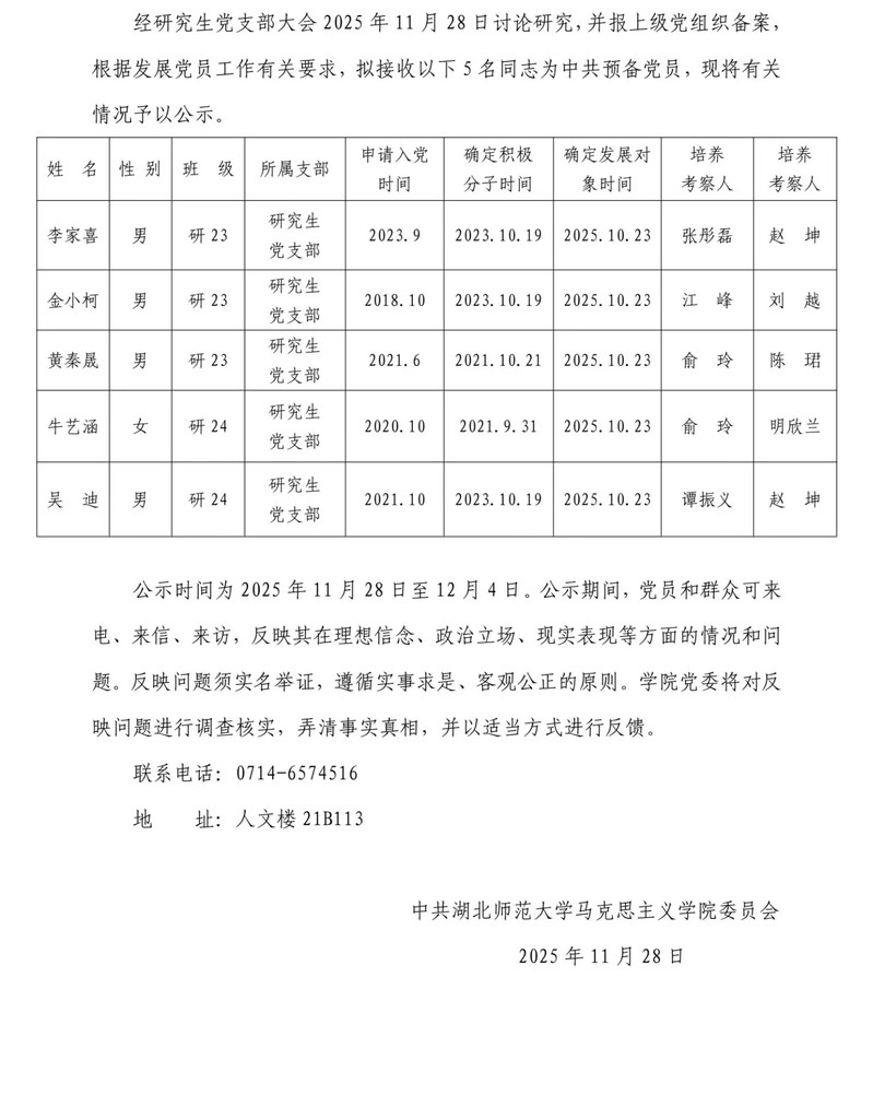 关于拟接收2025年下半年中共预备党员的公示