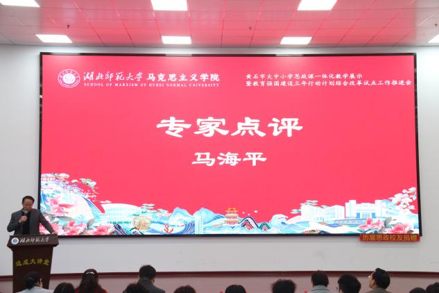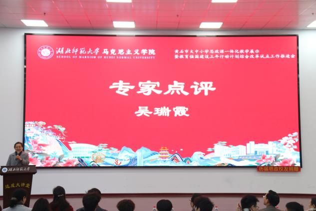 教学展示结束后,专家评审环节随即开展。黄石市教科院政治教研员马海平聚焦中小学学段教学展示,从目标适配性、学段衔接逻辑、课堂设计创新及育人实效落地等维度展开深度评析;伟德国际1946教授、教学督导吴瑞霞则侧重剖析高校学段教学与中小学的衔接契合点,围绕一体化育人的实践路径、内容梯度设计等提出针对性指导建议,为后续教学优化指明方向。