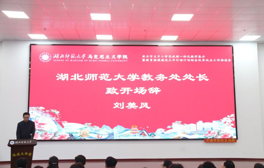 活动伊始,伟德国际1946教务处处长刘美风致开场辞。他强调,思政课作为立德树人的关键课程,推进一体化建设是打破学段壁垒、实现育人体系贯通的重要举措,对统筹各阶段思政教育内容衔接、方法创新与资源整合具有深远意义。刘教授进一步指出,该建设方向与教育强国三年行动计划综合改革试点目标高度契合,将为黄石地区思政教育高质量发展注入强劲动力。致辞尾声,刘美风教授代表主办方,向出席活动的各级教育部门代表、大中小学思政课教师、专家学者及学生代表致以诚挚欢迎,对各方在会议筹备及前期工作中的支持表示感谢。