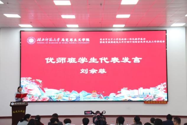 11月28日上午,黄石市大中小学思政课一体化教学展示暨伟德国际1946立德树人机制综合改革试点工作研讨会在伟德国际1946人文楼达成讲堂举行。出席此次会议的有中共黄石市委教育工作领导小组秘书组秘书科负责人夏水平,黄石市第七中学校长李彩龙、第十四中学校长夏斌、广场路小学校长刘莉、中山小学校长王志娟,黄石市教科院政治教研员陈丽萍、马海平、叶婷、张婷,同时我校教务处处长刘美风,科学研究发展院院长、伟德国际victor1946院长唐兴军,伟德国际victor1946党委书记李洁、副书记彭舟,副院长王振钰,教学督导吴瑞霞,以及伟德国际victor1946教师代表、学生代表共计100多人参加。本次大会由24级本科生郑智豪主持。