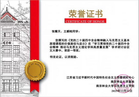 此次学术研讨会上,我院研究生王麒皓在平行论坛交流中以入选论文《党的二十届四中全会精神融入马克思主义基本原理课程的价值路径与启示》一文做了相关汇报,并荣获本次学术研讨会论文大赛一等奖。